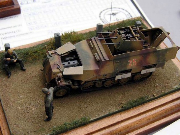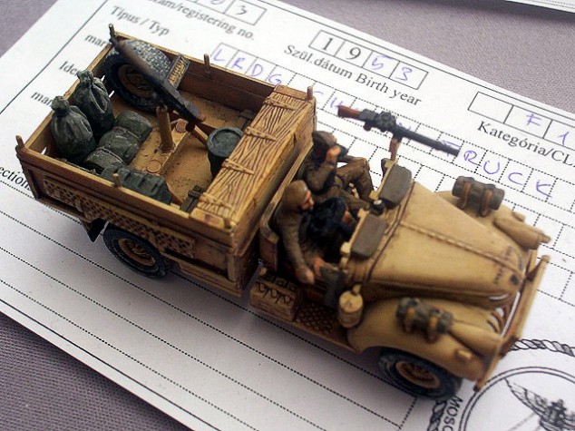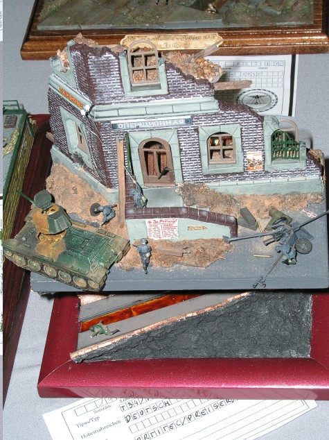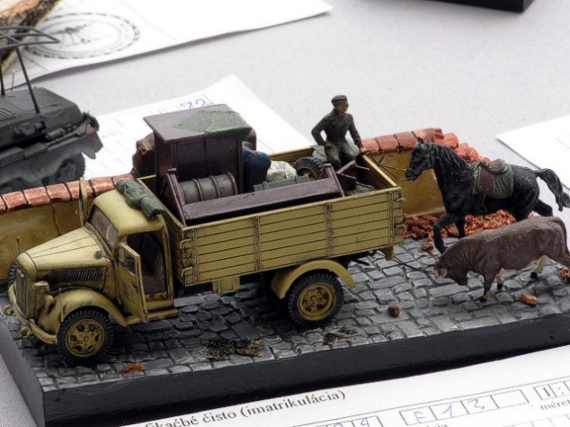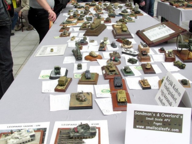 This year it was first time when I visited this international modelling event. Right at the beginning I have to tell you it was excellent modelling show. Totally slightly only less than 1500 models! Very nice aula of Mosonmagyarovar university with enough light! Separate rooms for vendors, flea market and modelling clubs promotion! Lot very nice awards and plaques waited not only for winners! French model club promotion! German model club promotion! Organizers prepared also special cultural program! Our group found own cultural for evening in one of local pubs! It was really international event and this map shows places where modellers came from. Not all places marked! Except Czech, Slovak and Hungarian colleagues I could meet also hobby colleague Karl Pesek (Austria), Yves Duprat (France) and Mauro Traverso (Italy). And now back to the models. Here below can see almost all 1/76/72 scale entries in categories wheeled/tracked vehicles and dioramas. Some of the are already known from our gallery, some of them will come there soon but many will stay lost for internet modellers. Models in 1/87 scale are not our hobby but let me show you how nice can be dioramas in this smaller small scale. I have to again tell you that the event was really superb. Therefore I'm afraid that next year will come more modellers to participate in the event and the organizers will have to look for new location to place in all coming entries. Probably also one more hotel should be build up for next year. Shown photos came from several cameras, thanks Brano Herain, Pavel Stechr, Petr Dospisil and Svata Rozsypal. Several poorer came from my camera.:-) Over |