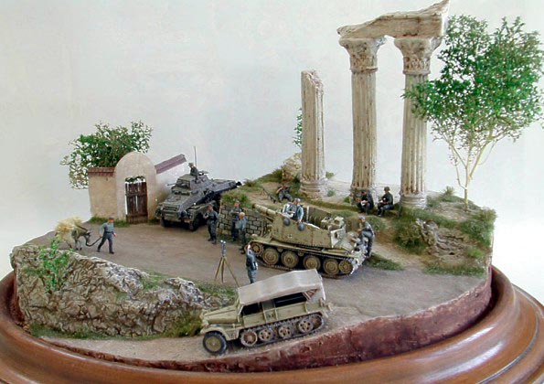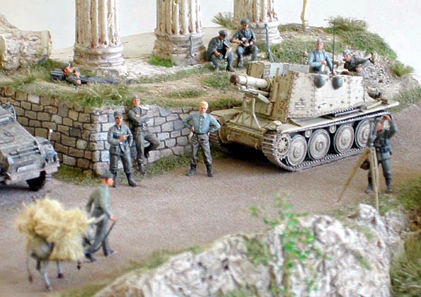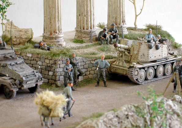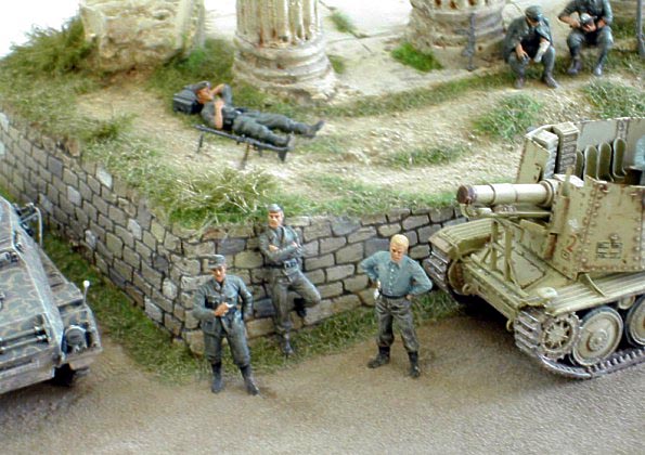 This is diorama in English called “Idyllic repose” represents German soldiers relaxing somewhere in Greece.