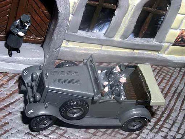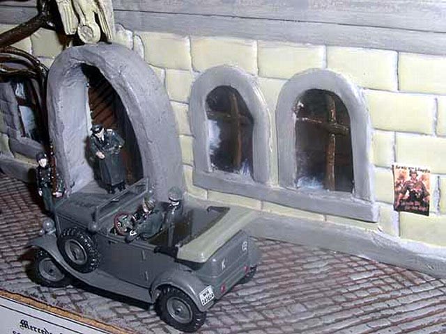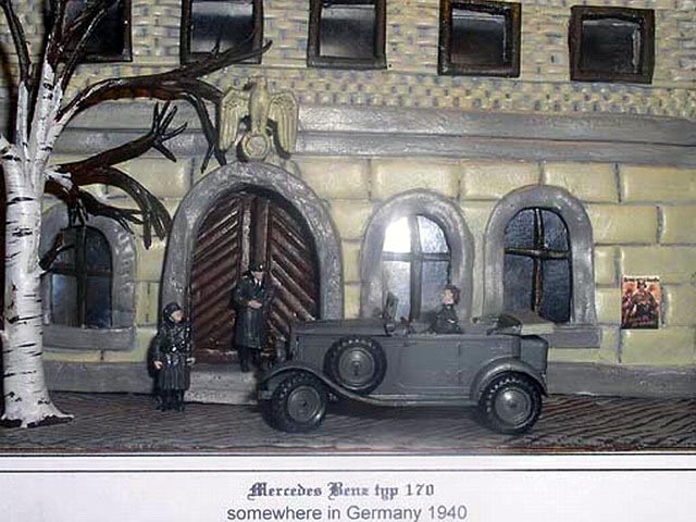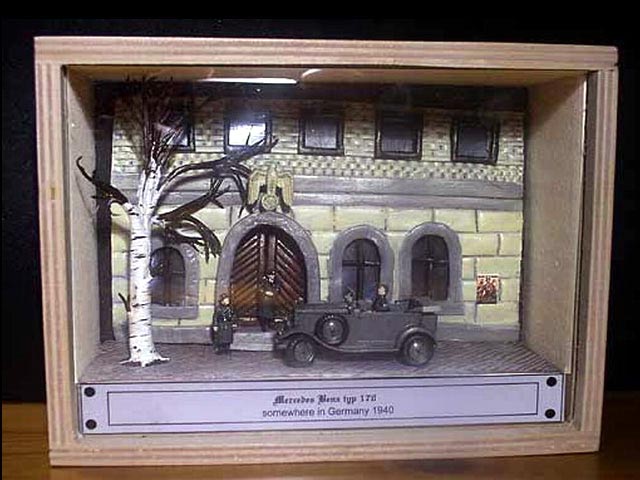 This dio shows Hasegawa Mercedes w31 G4 converted from 6 wheels to 4 wheels.The building, street and the tree are made of modelling clay.