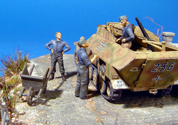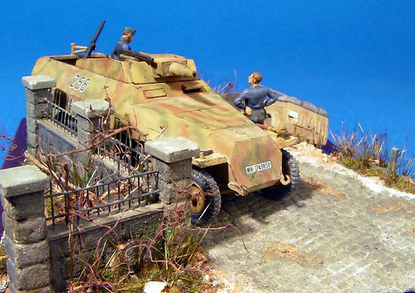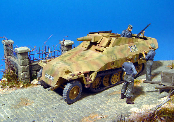 Sd.Kfz. 251/9 Stummel from Hasegawa and Kubelwagon was from Academy's Ground vehicle set. The figures were from Preiser's set.