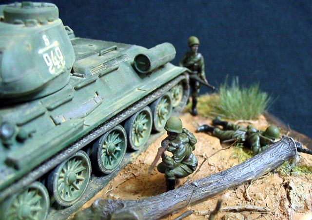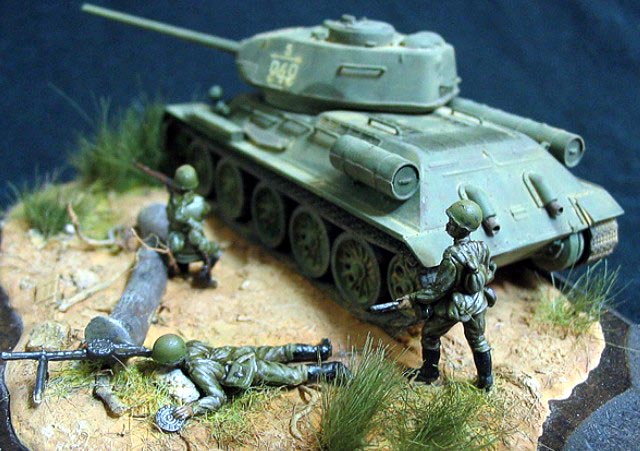 Small dio with Revell T-34 and Italeri (ESCI) figures.