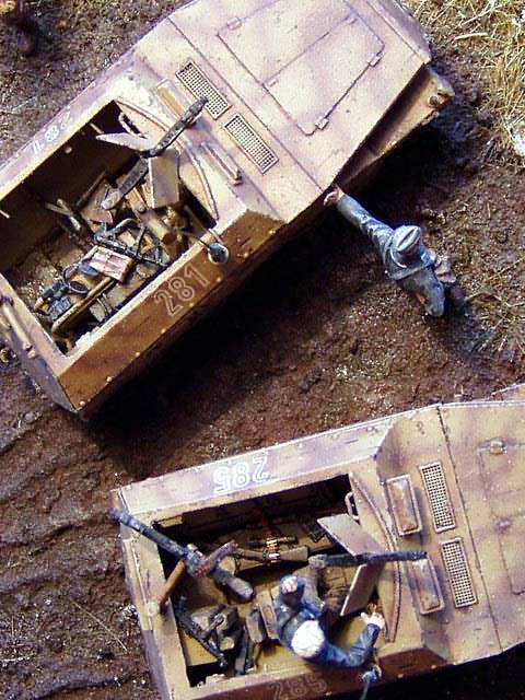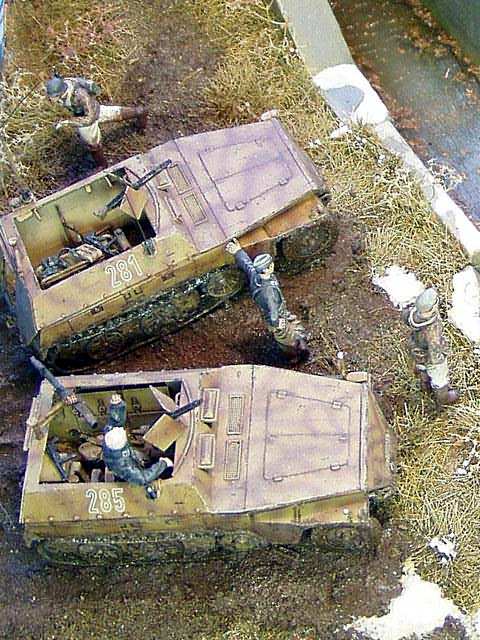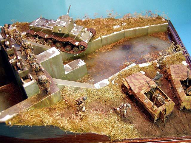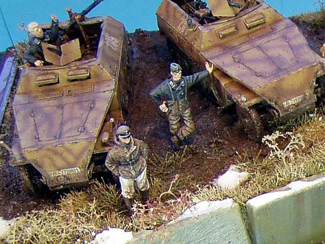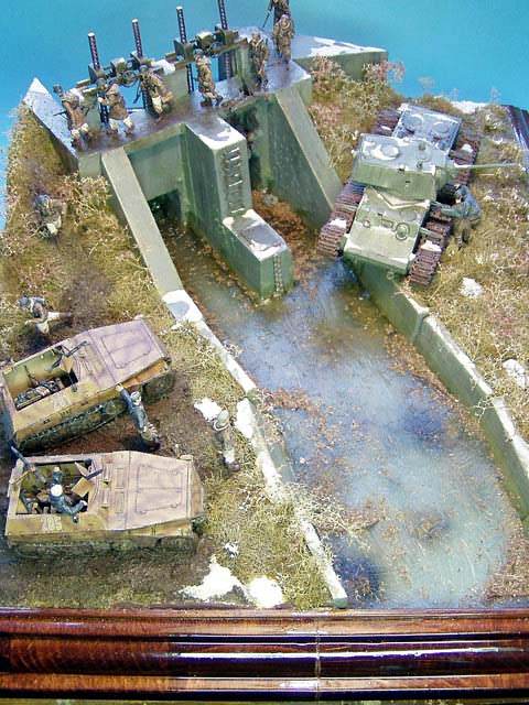 Scale: 1/72 Models: Sd.Kfz. 250/1 a 3 Neu - Tracks&Troops, KV-1 - PST Figures: MIG Productions & Warriors The sluice itself is cast of plaster into mould made of plastic sheets.. The water is created using Woodland Scenic Water Effect material. |