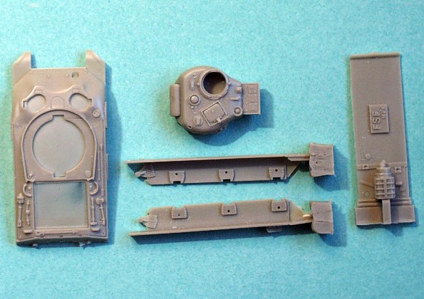 | Quality | This kit includes many parts more that some plastic kits. All parts of the kit are very well cast with few fine simply removable flash on small and fine parts only. Some parts include bigger sprue but it shouldn’t be problem to remove it. The kit includes many very small fine details that can be simply broken or lost, so be careful when you work with! The hull has to be completed from few parts. The hatches and engine cowling are moulded to be open if you like. The hull includes driver’s compartment with gear box and it can look very well completed with some sctratchbuilt details. The engine is not included in the kit but you can withou problem use the engine from of common Sherman M4A1 kit by ESCI/Italery if you want to get really detailed model. The turret is cast as full but with the hole in place of driver’s hatch so it can be simply realize as open and you can put in figure of tank commander. The tracks are cast in strips have to be shaped with help of hot water before placing on the chassis. |