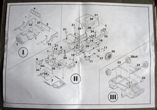 | Quality | Mouldings are lay-out into 2 miniature frames. No matter to very small size of kit it contains a relativly large number of parts. All parts are molded in high quality, without mistakes. Accuracy of model is very good. Canvas roof of car can be make open or closed. It’s a pitty that model contains no figures or personal accesories of soldiers. |