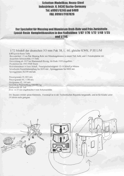 German antitank 50 mm gun PaK 38 in 1/72 scale