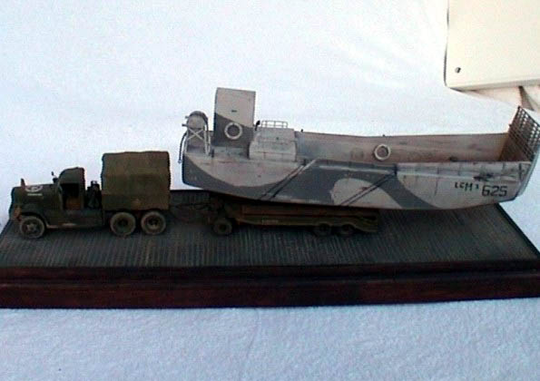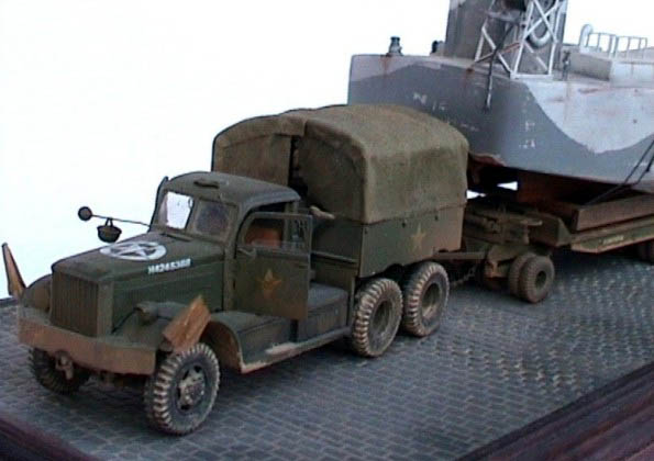 Documentation: Wheels&Track No. 54 Les Vehicles du Debarqement 1994 Own photos taken in Transport Muzeum, Beverly, UK Pictures from W&T magazine by Militaria, The model of the Diamond T 981 trailer-towing vehicle is based on the kit set ”Diamond T 980 M-19” by Matchbox. I have modified the springs, the axles, the wheels, the towing device, the running rolls, the rope and the rope drum to. I have also modified the cab interior, the mirrors and added the tarpaulin frame and the tarpaulin on the cargo surface. I have used the Humbroll paint M117 to airbrush basic color and the Humbroll M29 for the patina. The used decals are from the Matchbox’s kit. The model of the Rodger Trailer M9 is also based on the kit set ”Diamond T 980 M-19” by MATCHBOX. I have modified more details on this kit. For example the tow bar, the rollers for the rope. There are also completely new parts as the sides with the functional staples and the slip sides. I used the same painting and the decals as on the trailer-towing vehicles. The model of the LCM Mk.3 is the Airfix’s kit with a few modifications only. New is the winch of the rope drum, the railing and some small details. I have found the camouflage for this model is inspired by W&T magazine by Militaria It took me about 300 hours to finish all these models. I won the IMPS UK with the Diamond T 981 in 1994 and placed second with the Rodger Trailer M9 with LCM Mk.3 on Czech Republic Model Competition in 1998. Petr ”Dusin” Dusek |