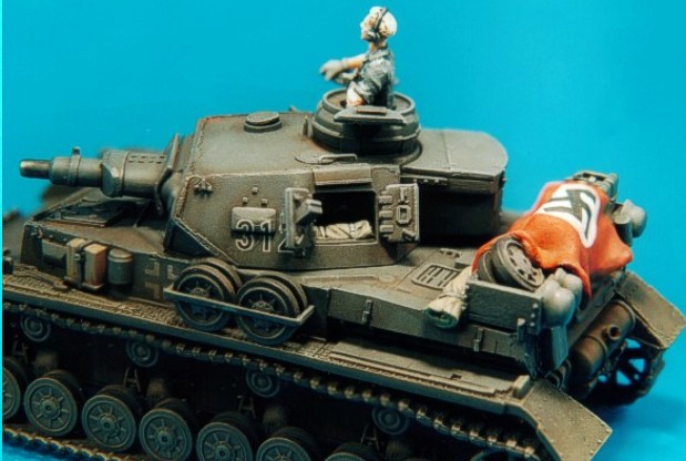 The model was made using the Revell hull, wheels and tracks and the Hasegawa turret. The figures are both from AB.