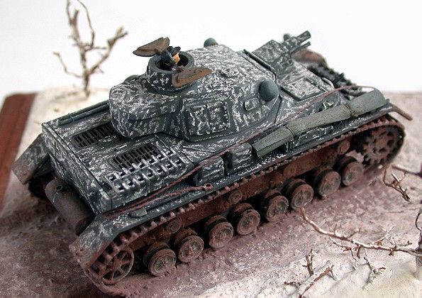 This model is scratch conversion from original plastic kit of Pz.IV Ausf G. The model represents tank shown on photo in Panzer Colors book (the red one), page 20.