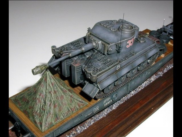 Scale: 1/72 Model kits used: Faun ZRS – CMK Planet Models, SSyms wagon – JV Model, Pz.Kpfw. VI Tiger – Hasegawa A model of the Faun ZRS by Planet Models is very nicely cast and the kit contains also metal parts. I have already described a construction of this model in the Gallery. Because I had not known what to attach to the Faun on the rails, I appreciated a flat railway car SSyms by JV Model. It is a resin kit. A construction had absolutely no problems; I just added some details, e.g. lugs, hooks and steps. Pz.Kpfw. VI Tiger is an old model by Hasegawa, which was catching dust on my shelf half-finished and I did not know what to do with it. The wheels were made new when this Tiger by Hasegawa was the only model of this type on the market as the original ones in the kit were wrong. I added a tent made from a paper tissue on the wagon according to a photograph, a barrel and I fixed the load on the wagon with wooden wedges.. |