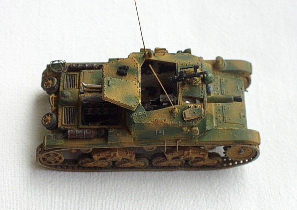 This model of Italian self-propelled howitzer includes complete interior and engine detailed and scratchbuilt according to the instruction sheet of 1/35 scale kit by Tamiya. Camouflage & marking: ”Hermann Göring” division, Tunisia 1943. Documentation: publication ”Panzer Colors III” by Sqadron/Signal and publication ”Afryka 1940-1943 Wlochy 1943-1945” by Militaria |