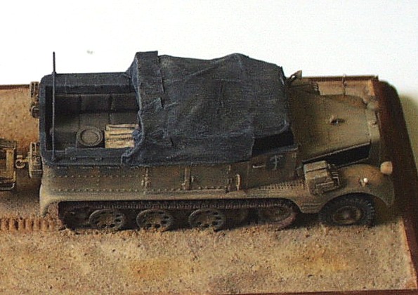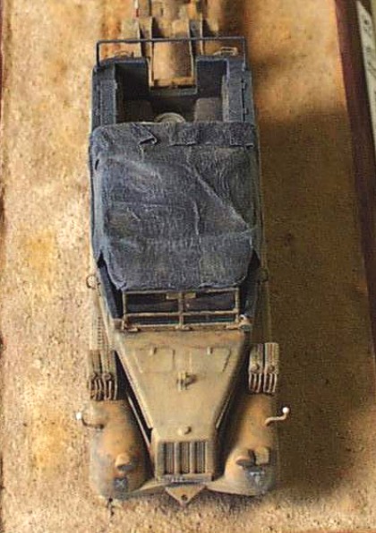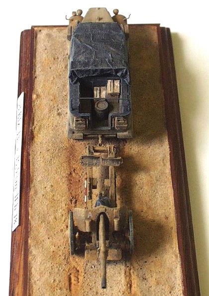 kit: Sd.Kfz. 11 in 1/72 scale by ESCI This model of 3 ton towing vehicle is built out of ESCI kit without any big modifications. I added only scratchbuilt engien, radiator and cabling. The side parts of cowling are not installed. The tarp and its frames are also new as well as the wheels of the tracked chassis Some small parts in interior, holders, handles are also new. I also added some accessories as the cases, cans atc.The towed 10,5 cm howitzer is complete scratchbuit according to Revell’s soft plastic kit. The model represents the vehicle of DAK and it is built according reference photo of the real vehicle and maintenance manual. It took me about 50 hours to complete this model. |