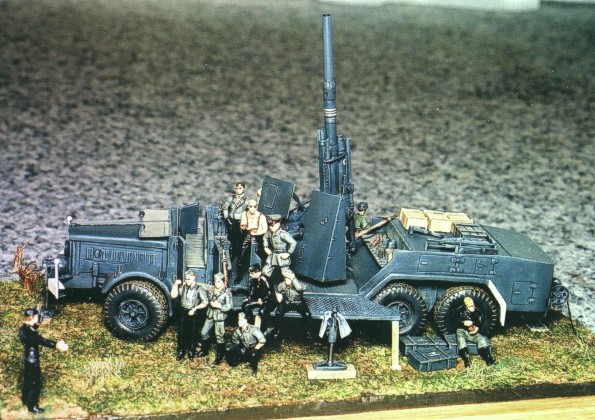 This is a model of 88mm Flak mounted on Vomag truck was born as conversion of resin kit of the came gun mounted on Büssing truck available by Polish Mars company. I have scratchbuilt new housing, front bumper, doors, tipping sides atc. I has also modified - round back of the vehicle. The model is airbrushed with PanzerGrau color. Stepan Los |