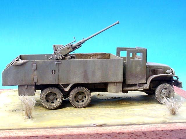 Scale: 1/72 This is scratch conversion of Airfix GMC built using old Airfix Bofors gun and lot of plastic sheets and other material. The result is model of GMC guntruck used by French army during war in Indochina. |