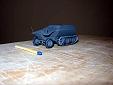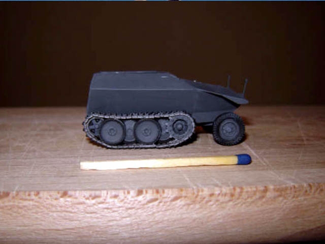 As you can see this model is smaller than a match in our scale. It is basically a Den Bels kit HKp 606 shortened by one centimetre, no holes in the bonnet and minor detail changes. It has only four seats in the back so even more useless than the already cramped Sd.Kfz 250.... I still wonder who ever thought this one up...and why... |