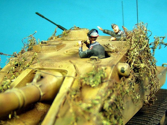 This model is based on Dragon E-100 suspension. The upper part is conversion set I have built as master kit for Kora. I just have added new exhausts and machined metal barrel of 3cm gun MK103. The figures came from Preiser set. |