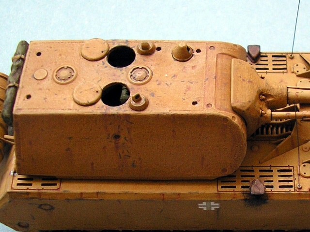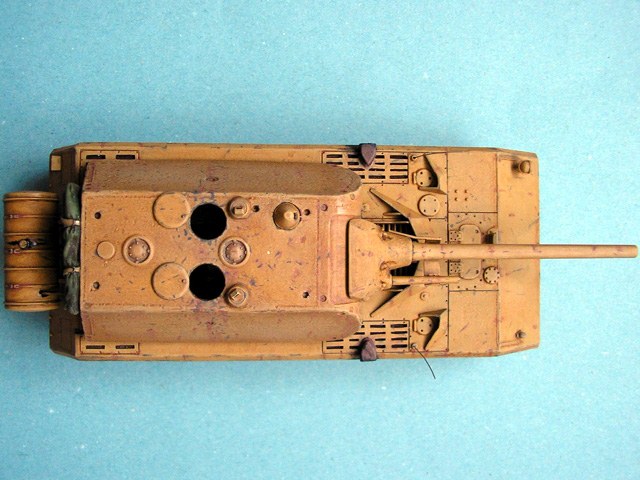 This model is built almost from the box. I just added schematical interior to show something through open hatches. I have used oil colours and pigments for weathering.