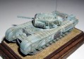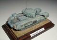 Manufacture: Esci, 1/72 I built this model in the time when I was starting building the small scale AFV. It was built quite well and I didn‘t want to turf it out, so I took it out of the waste-bin and unpainted it in the lye. Some parts fell away during this procedure, but tank was glued well and stayed. Some details like grab handles were made from wire and glued on their places. After study of photos I added some equipment – helmets, tilt, bags and spare track links. I sprayed the winter camo over the basic green, left 10 minutes to dry and then brushed with the teeth-brush. Then I shaded the tank with oil paints and the job was done. Even though it was almost “dead” model, it became a nice model after the re-paint and it was prized at the UK championship. |