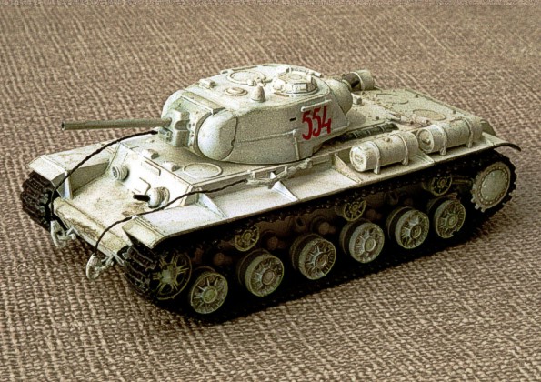 Scale: 1/72 Kit producer: PST I built this model of the Soviet heavy tank straight out of the box (as I usually do) with the exception of the towing cables made of brass wire. I tried the white winter camouflage for the very first time. I tried several methods – pre-shading, post-shading, the best results were achieved with applying Aeromaster acrylic RLM 71 on the white surface. Now you can see the result. |