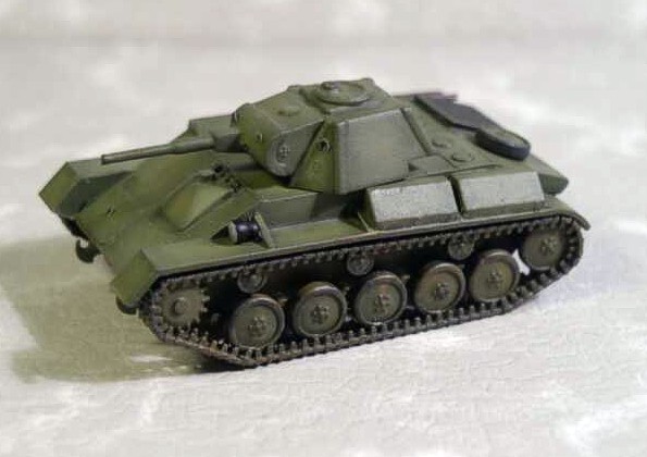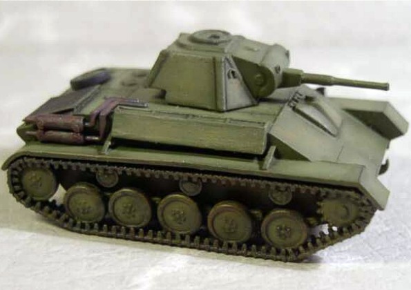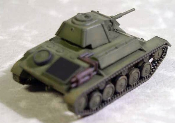 The model was built from kit made by relatively new Ukrainian company UM. The unassembled kit looked well and contained a small set of PE parts, so I started to build it immediately. The building went without any problems, fitting of the parts is very good. The only parts needing some putty were the exhausts and the cannon mask. But Italeri putty didn’t work, so I used the cyanoacrylate glue. After few attempts it was done. I finished the model as vehicle from the 1st Czech tank brigade in USSR. It was quite easy, because none of the T-70s wore any writing or marking. I tried for the first time making the middle parts of surfaces lighter than the edges. According to size of the T-70 and to first attempt I’m quite satisfied. Then I tried to add some mud and dirt, but this time it was not so successful in my opinion. I think that this kit is one of the better kits on the market, but I think that the price [about 9 USD] is little bit higher than it should be for kit of this dimensions and difficulty. I didn’t compare the kit with drawings, because I don’t have any, so I can’t say if the dimensions are correct. |