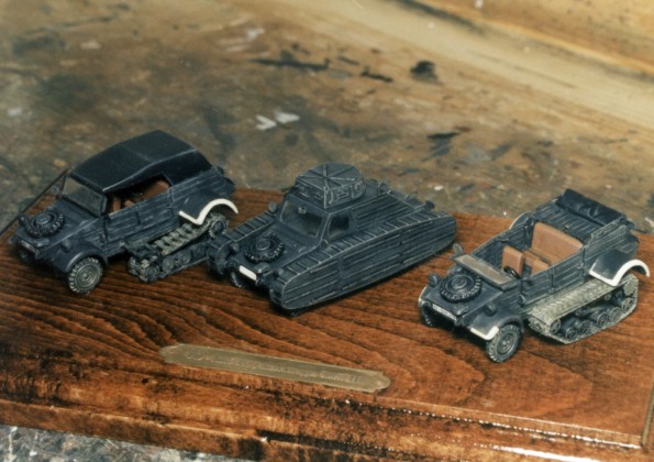 Scale: 1/72 Kitr producer: Kora models, Czech Republic All three models are built straight out of the boxes. Only front axles of tracked vehicles are modified. The tracked Kübelwagena were designed for difficult terrain (snow, sand, mud) but the prototypes used for tests were produced only. Panzer Attrapes served as in tank school units in the thirties and early WW2 period. |