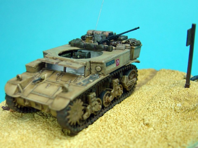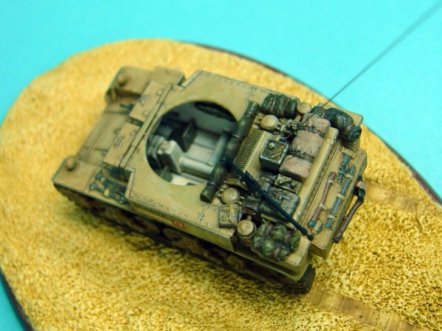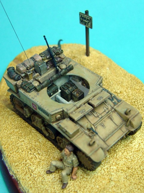 This model was born as scratch conversion using interior parts from Fujimi Sherman. Recce Stuart. The figure is by AB figures.