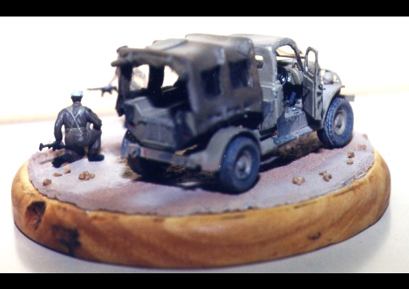 Scale: 1/76 This is complete scratchbuilt model in 1/76 scale made of plastic sheet. The wheels are resin copy of the wheel from "LRDG" by Matchbox. These vehicles were produced specially for Comonwealth and other Allies. My model represents FFL vehicle serving in North Africa in 1942. |