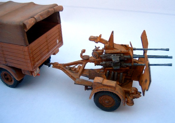 Opel is built out of ESCI kit and quadruple 2cm Flak is from Military Wheels. Both completed with many details.