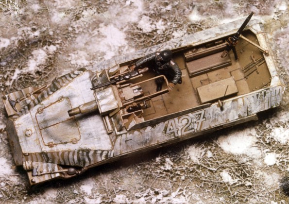 Scale: 1/72 Kit producer: Hasegawa, Japan I added new mudguards and gun shield plates made of sheet, some details of the gun and new rear MG mounting. I also embroidered tracked suspension to look more realistic going in terrain. My model represents vehicle of "Grossdeutschland" division, East front 1945. |