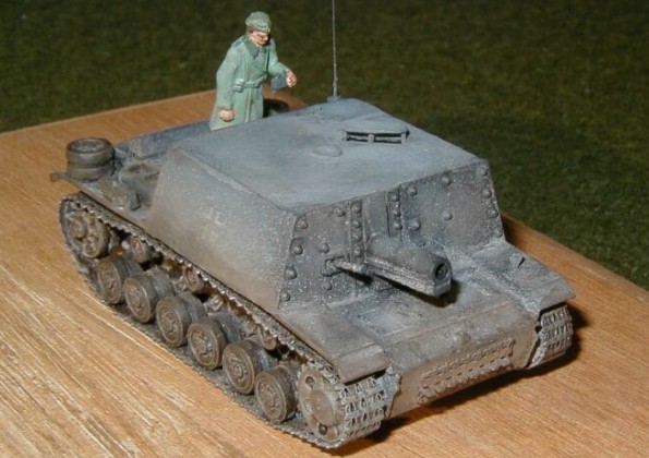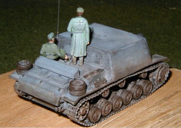Scale: 1/76 Suddenly I have decided to represent this model. In spite of the 3-color scheme being relatively more beautiful, I was interested on a vehicle that it is known for action. This is a very rare variant, a 150mm gun mounted on a Panzer III chassis. This model depicts the first batch of 24 sent to Stalingrad. I based it upon one single photo existing on the "Stalingrad" version, and used many plans sent by members of the small scale community and converted the superstructure with scratch , with photoetched tracks from Part and wheels from Matchbox. the figures are from Hasegawa and Fujimi. Thanks for Jadar for the tracks and Augusto Versiani for the pictures. |