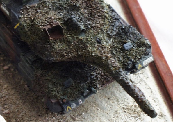 I work on few ”modern” kits and they pressed me to think how to make NATO foliate camouflage net used by some NATO armies. I had place the question concerning this theme to Missing Links Braille Scale Group and colleagues advised to use the plaster, some kind of spices atc as base material. Then I decided to use other material and my own way to crate foliage camouflage net. The most important thing for the making of the net is base spreading material able to crate required leaves. I have found simple and cheap solution. I use coarse wheat bran as the spreading. You can get this material in the shops with healthy food or directly in the flourmills. You can see on the picture below how this material looks like. The foliate net production is really very simple. You just have to apply adulterated white glue on the places should be covered with net and than sprinkle them with spreading bran. You can also first apply the napkin paper over some broken parts of your model and then sprinkle it with the spreading. When the white glue gets dry I recommend you to spray all net places with water and let them get dry again. The painting of dry net is also very simple you can do it by the airbrush or just by the brush. The finished foliate camouflage net placed on the tank is taken o pictures below. Overlod |