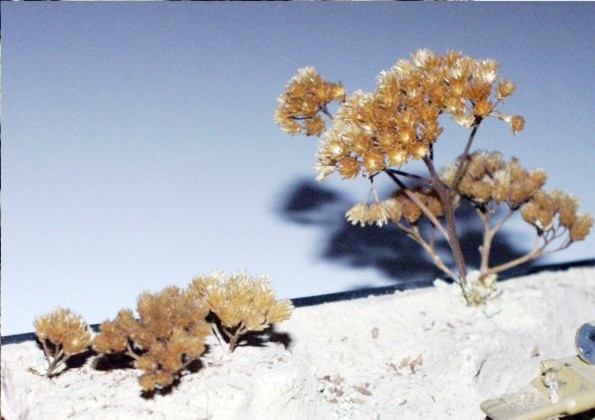 trees, bushes and similar small plants. The dry rootlet of some types of the threes and the plants are ideal for the imitation of dead, burned threes of just the three without the foliage. They have ideal color and the shape as real threes mainly. I used also the hair from corn cobs combined with the usual model spreading to imitate gross green of the jungle on one of my dioramas. As you can see the nature is the inexhaustible source of the model materials. Isn’t it??? Overlord |