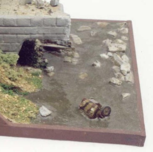 livelier in my opinion. I’ll not describe my long way of looking for the best material for my waters. I can straight tell you that the best for this purpose is the clear two-par epoxy resin in my opinion. I prefer myself using the epoxy resin getting stiff in 30 minute. Why? You will understand it later. First I finish complete diorama base including the spreading and then I take care about the places where should be the water sheet later. I paint the future ground in required color (green-brown usually). When the paint is really dry I start to apply the prepared mixture epoxy resin. I usually add a little of synthetic paint (lighter than used for ground) into one of the parts of the epoxy resin before mixing because the absolutely clear water is unusual. I have about 20 minutes when the epoxy resin mixture is getting stiff to make some waves atc. on water surface. The slice, wooden stick or wire is the best for this purpose. When the epoxy resin mixture is rely stiff I can paint the crests of waves and lumpy water with little of white paint. Finally I can also spray all surface of water with gloss varnish to get better physique of level. There is no problem to dip some kit or any other object into water using this material. I just stick this object on the water ground and than pour the epoxy resin mixture around it or just to put this object on level getting stiff and press on it a little. The only problem with dipped or float object is that the epoxy resin mixture is rising up on its sides. Therefore I push the mixture away from the sides of the object before it gets stiff. It’s really not simple to create the perfect imitation of water but for example the diorama with sea looks great. Isn’t it? Overlord |