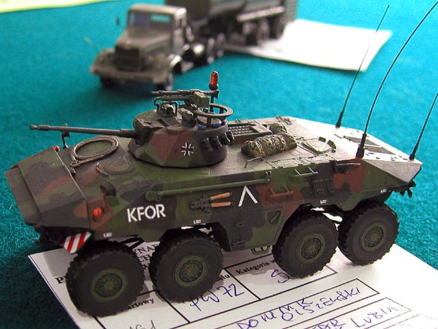 Letošní ročník byl již třetí, který jsem navštívil, bohužel vzhledem k tomu, že to je dvoudenka, jen jako divák. Akce se konala opět na stejném místě. Součástí byla bohatá burza. V našem oboru nabízeli výrobky pouze polští prodejci, přesto byl výběr bohatý. Soutěže se zúčastnily většinou nové modely, z loňska jsem neviděl žádné. Některé ale znám z jiných akci, například z loňského Náchoda (modely Mirka Szczepankowského). Jako obvykle se v malé technice soutěžilo ve dvou kategoriích, vojenská vozidla (pojazdy wojskowe) a bojová vozidla (pojazdy bojowe). K vidění byl dva modely Dragon Wagonu postavené ze stavebnice Planet Models. Jeden z nich (model Julka Olejnika) zvítězil v kategorii - vojenská vozidla. Mezi bojovými vozidly se objevily hned dvě Merkavy, přičemž jedna z nich zvítězila (ta s osádkou). Shrnutí je jednoduché, pěkná akce, příjemný pokec s kolegy a úspěšné nákupy. J Piotr Mostowiak |