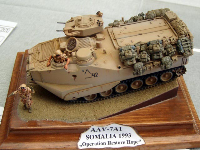 Po své loňské první návštěvě jsem si letošek nemohl nechat ujít. Opět to bylo super, perfektní prostory, skvělý program, bezva lidi a stovky nádherných modelů všeho možného. Velmi příjemné bylo zejména setkání s mnoha kolegy z celé Evropy. V "malé technice" se soutěžilo ve třech kategoriích, kolová-kolopásová, pásová do roku 1945 a pásová od roku 1945. Kvalita soutěžních modelů byla velmi vysoká. Řada pěkných výtvorů byla k vidění v dalších kategoriích - diorámy, malé kompozice atd. Výrobci a prodejci měli letos k dispozic o sál více, celkem tedy dva. Bylo jich mnoho, takže opravdu nebyl problém s utrácením za zajímavé věci včetně žhavých novinek. Zajímavé stavebnice a konverze dovezli z Německa MB Modellbau. Pan redaktor dorazil se svým obchůdkem, ale dělal, že mě nevidí. Stejně tak pan Bílek z Calibre72/48/35 přede mnou klopil oči, ale dorazil s novým Strv 103C, nákladem pro DUKW a skvělými americkými tankány! Extratech dorazil s fungl novými sety na M8 a Extrapackem M-36 Jackson Na stánku CMK se objevil tahač M-26A1 s podvalem. Řadu novinek představil také Profikit a něco bylo k vidění i na stánku e představil HR Model. U nich mi ale bohužel fotečky chybí. Pořadatelé se postarali také o bohatý doplňkový kulturní program! O večerní program se většina návštěvníků postarala sama .... :-) Fotografie pocházejí z fotoaparátů Štěpána Lose, Martina Schustera, Andreje Krašeninnikova a něco i z mého. Tímto kolegům děkuji za spolupráci. Over P.S. Modely se rozhodně nepodařilo nafotit všechny. Pokud tedy někdo ještě něco z malé techniky máte, pošlete to prosím, rád to do reportu přidám! |