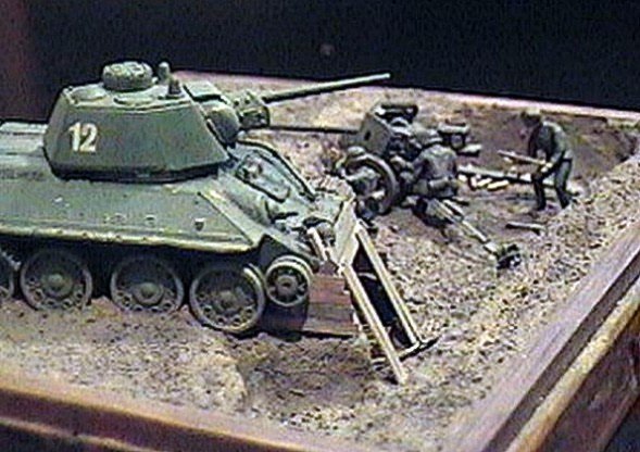 k vytvoření tohoto diorámatu, v češtině nazvaném ”T34 na