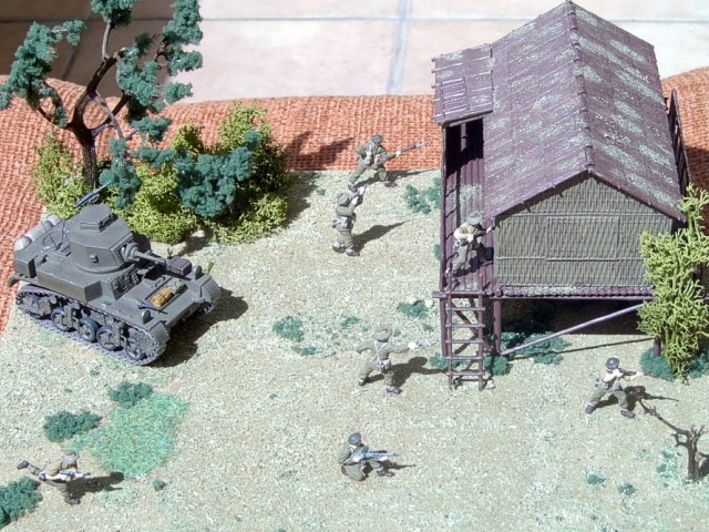 Jednotky 2/6th Australian Armoured Regiment (1st Australian Armoured Division) bojující o Giropa Point.