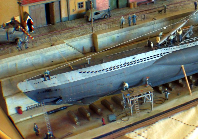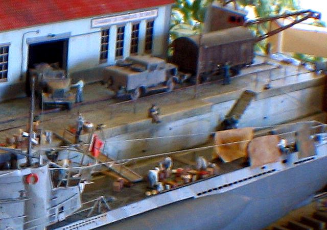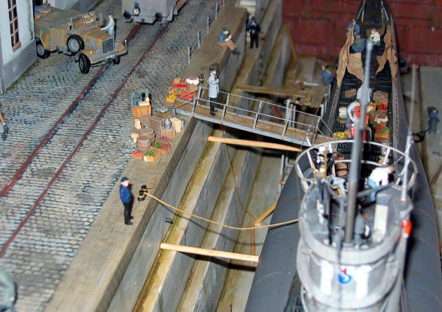 Měřítko: 1/72 Výrobci modelů: Revell (U-boat)- Italeri (Opel Blitz & Kubelwagen) - Attack Models (Tatra T57) - ZV models (Einheitsdiesel) - Planet Models (Faun ZR) Obtisky: ULAD Poznámka: lodě, vozidla a figurky jsou ze stavebnic ostatní na diorámě je vlastní výroba |