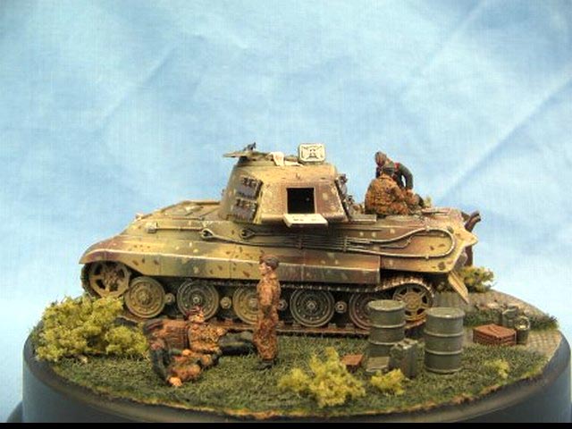 Měřítko: 1/72 Výrobce kitu: DML Dragon Figurky: AB figures Model je postaven z krabičky. Nářadí je ze setu 1/35 od Verlindenu, přičemž jsem použil jen to nejmenší. Sudy, kanistry a bedny jsou od Academy. Terén na diorámě je od od Woodland Scenics, přičrmž dlážděné cesta je doplněk k HO vláčkům. |