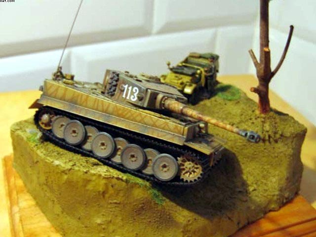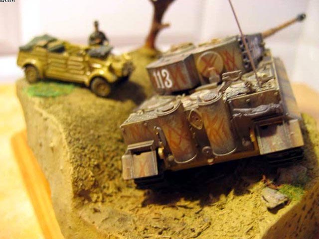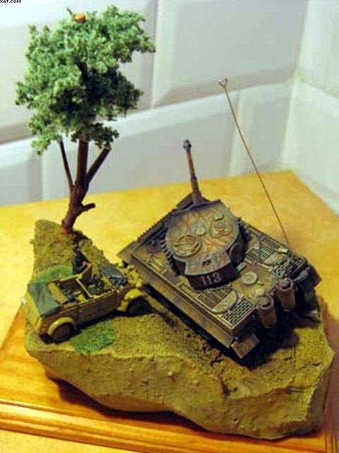 Na diorámu jsem použil RC model Tigeru od Dragonu a Kübelwagen of Academy. Figurka je od Preeiseru.