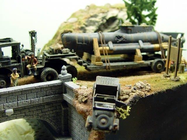 Měřítko: 1/72 Modely & Figurky: Planet Models - Verlinden - Preiser - Italieri Dioráma zachycuje Americký konvoj převážející ukořistěnou miniponorku, jenž byl přepaden malou německou jednotkou. Více fotek najdete na mém webu http://www.michdioramas.ch. |