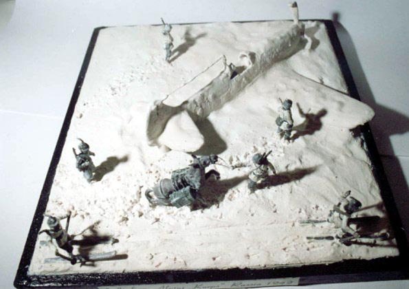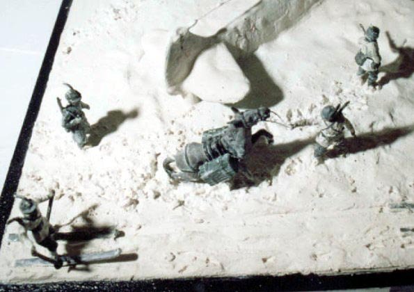K tomuto diorámatu mě inspirovala informace o nasazení této jednotky na Východní frontě v oblasti Kavkazu v zimních měsíců roku 1942. Zasněžený letoun v pozadí je sovětský LaGG 3. Overlord |