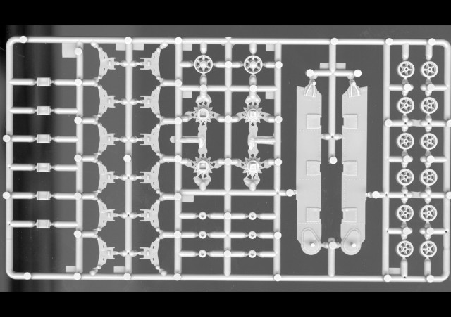 čtyři rámečky s díly ze světle šedého plastiku, vinylové