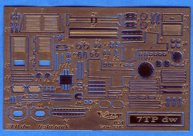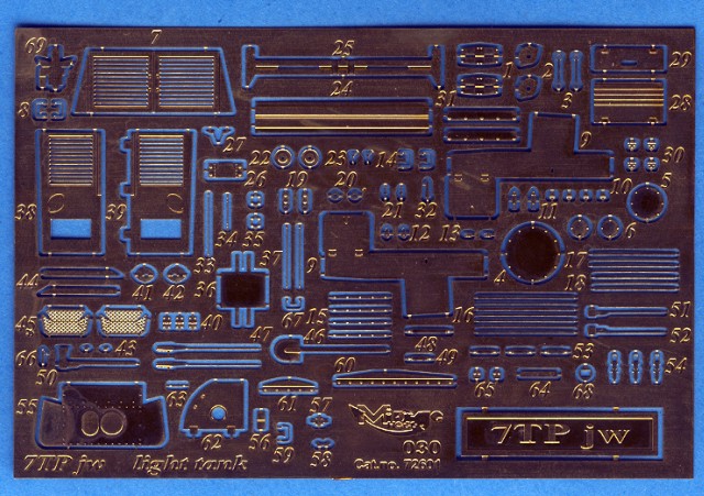 | Kvalita | Každý ze setů obsahuje planžetu leptaných kovových dílů navržených pro danou plastovou stavebnici tanku 7TP. Všechny díly jsou vyleptány velmi kvalitně. |