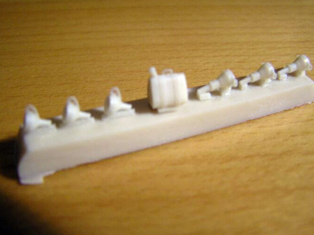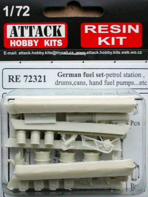 | Kvalita | Sada obsahuje jeden stojan pro výdej paliva a dále spoustu drobných částí – barely, plechovky s olejem, kanystry, trychtýře a ruční pumpy. Soupis je zřetelný z obrázku návodu. Díly jsou čistě odlity ze šedého resinu, s malými otřepy, bez bublin. |