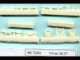 Čtrnáct součástek děla je odlito z pryskyřice světle béžové barvy. Přiloženo je rovněž 11 střel ráže 75 mm a 11 prázdných nábojnic. Kvalita odlití je velmi dobrá, s jemnými a čistými detaily. Jak je vidět na obrázku, díly jsou odlity na velkých blocích, přesto se zdá, že jejich oddělení ostrým skalpelem nebude problém. Pro sestavení modelu je zapotřebí zhotovit si podle návodu tři plastikové tyčinky. |