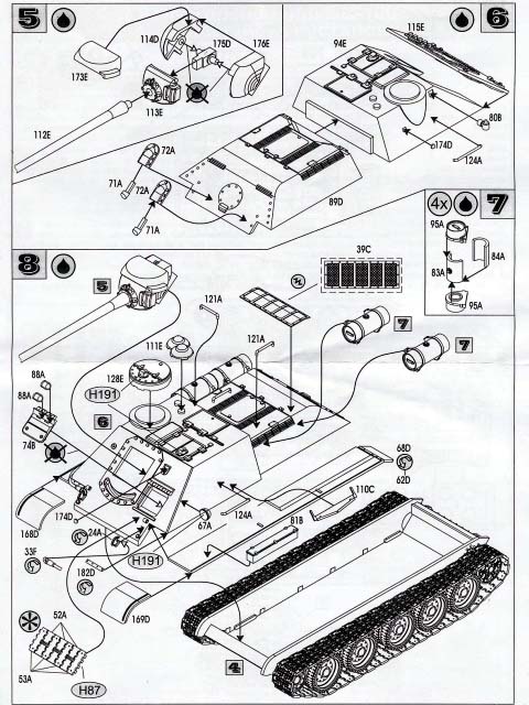 142 plastikových dílů, 2 fotoleptané a 22 gumových. Kromě nich najdeme dle