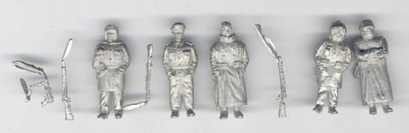 | Kvalita | Tento set obsahuje pět detailních figurek představujících skupinku postávajících ”mrznoucích” německých vojáků v různých uniformách. Zbraně (MP40 a 3 pušky) jsou odlity zvlášť. Na figurkách najdete minimální množství přelitků, ale na zbraních jsou velké odlévací vtoky. |