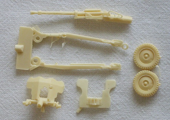 | Kvalita | Krom dílu závěru kanónu s hlavní, který je poněkud hrubší a lehce ohnutý, jsou jednotlivé díly tohoto velice jednoduchého modelu velice čistě odlity z resinu, pouze na některých naleznete jemné snadno odstranitelné otřep, nálitky a také dírky po několika bublinkách vzniklé při odlévání. |