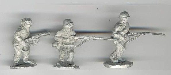 | Kvalita | Tento jednoduchý set obsahuje tři detailně provedené figurky představující postupující sovětské vojáky. Dva mají pušku s nasazeným bodákem a jeden pušku s granátometem. Figurky působí robustně a mají typické ”wargames” znaky, tzn. příliš velké hlavy a krátké silné ruce a nohy. Dlouhé bodáky jsou příliš tlusté a trochu ohnuté, ale dají se lehce narovnat. Jinak jsou figurky odlity relativně kvalitně bez výrazných přelitků. |