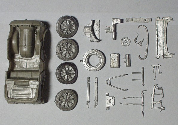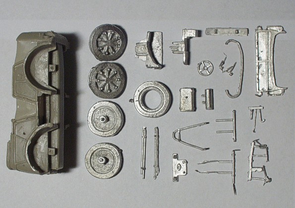 | Kvalita | Trup vozidla je odlit jako jeden kus z resinu. Je vcelku kvalitně odlit, bez bublinek a otřepů, má však hrubší detaily. Vstupy pro osádku vozidla jsou zality tenkou, snadno odstranitelnou blánou resinu. Všechny ostatní díly jsou odlity z bílého kovu. Většina z nich použitelná, na některých jsou drobné, avšak snadno odstranitelné otřepy. Problém asi nastane u masivních kol, které jsou dosti hrubé a nemodelové. Některé drobné detaily je třeba dodělat dle fotografií (např. místo dveří byl natažen řetízek!) |